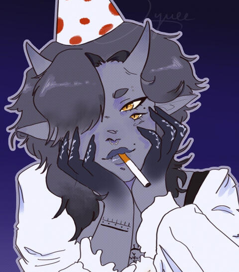 Vee followed the voice inside, everything soon turning dark and losing control of her limbs. She had been transformed, antlers replaced by two horns on her forehead, an oxen tail sprouting, feeling two eyes opening below where hers had been. She was grotesque, avoiding every pond and mirror until she made it all the way down— into Hell. After years, or centuries, of trials she had been sent to the Second Circle to process all their sinners. Once she defiantly refused and began to shirk her duties, her superiors sent her to another mission— a detective sent back to Earth to observe mortal habits and report back on how best to corrupt them.
